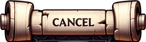 A scroll that reads Cancel on it. A cancel button with scroll type estetics.