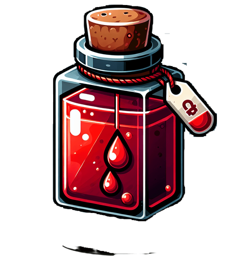 Perfectly square red Halloween vial of blood. Cartoon. Spooky art style