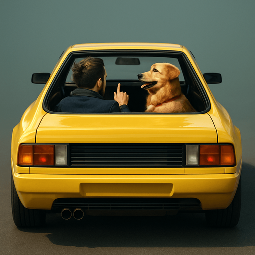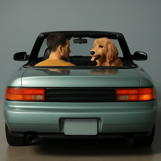The red car from Out Run, the retro arcade game, vertical, lookip up, pixel but now the car is of another color. There should be a man or a woman driver and a man or a lady on the copilot seat. Only draw the car the rest is transparent. Same perspective as the Out Run car.