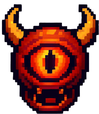 Generate a sprite sheet for a floating demon eye. Front side view. Include one attack sprite with mouth open. Retro pixel graphics..
