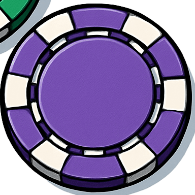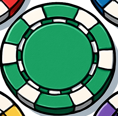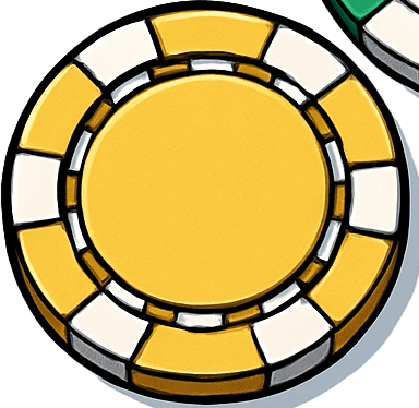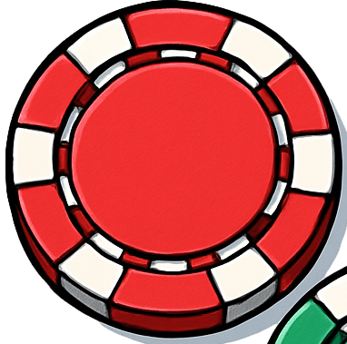 A set of five different colored poker chips seen from directly overhead. Anime style..