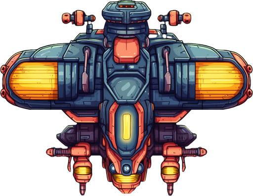Hero Spaceship, flying up, single cannon in the center Game Texture. In-Game asset. 2d. Pixelart. blank background. Low detail. High contrast.